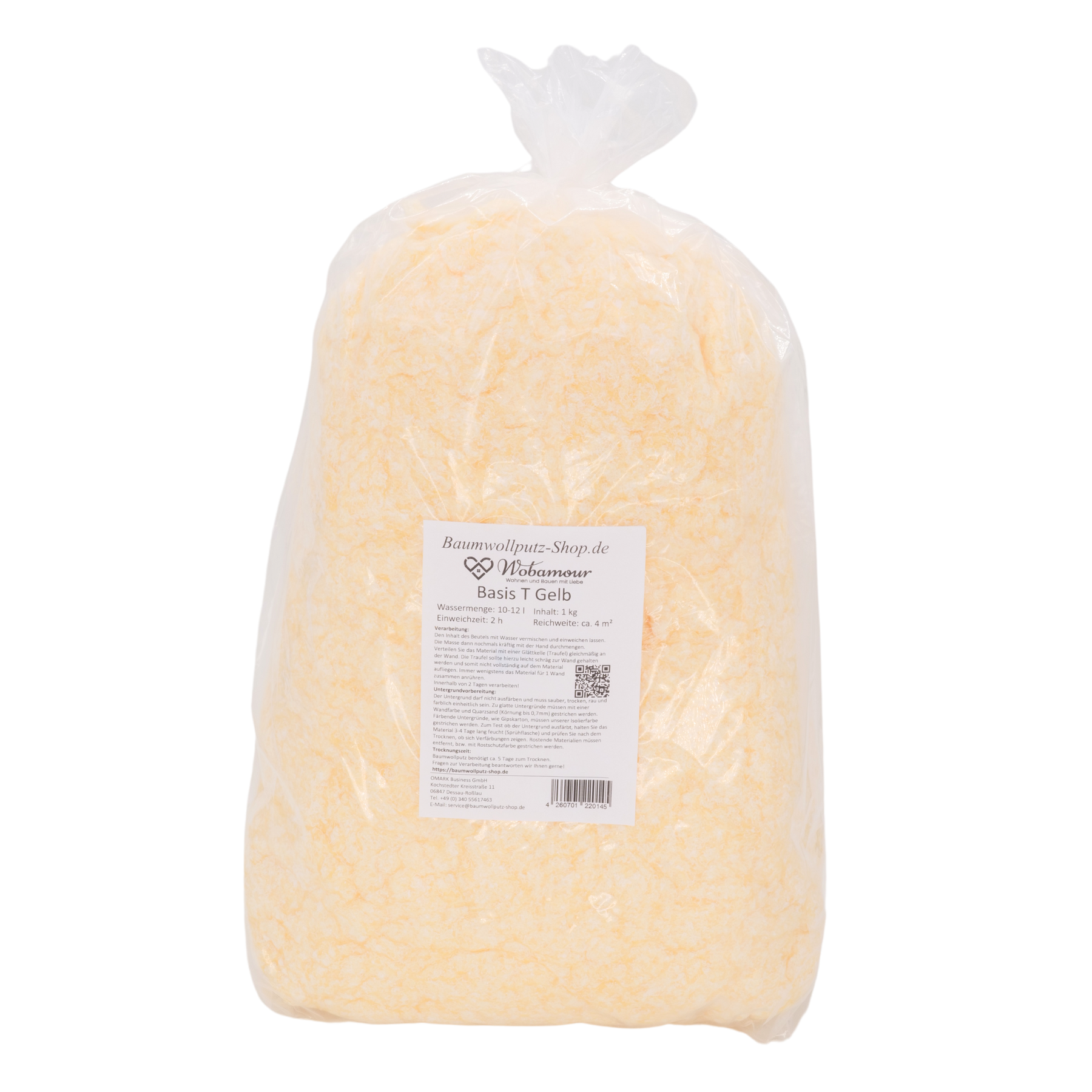 Dieses Dekor besteht aus einer Mischung längerer weißer Baumwoll- und gelber Farbfasern, welche der Oberfläche eine kräftige Struktur verleihen. Das Material ergibt eine weiche und luftige Oberfläche. Bei der Verarbeitung mit der Glättkelle sollte auf einen rauen Untergrund geachtet werden, da sich dieses Material etwas schwerer verteilen lässt.