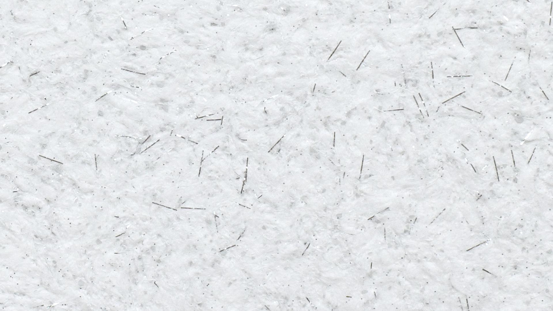 Grober Baumwollputz mit weißen und grauen Anteilen sowie Silberglimmer und Silberfäden.